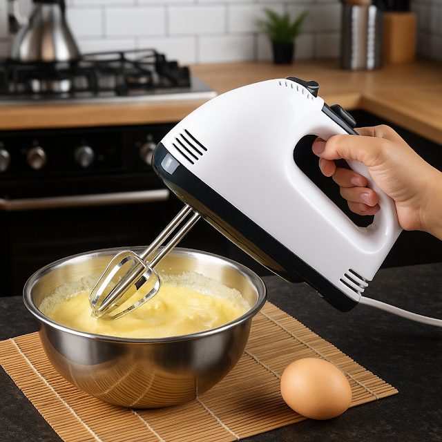 Powerful Hand Mixer for Effortless Baking দ্রুত এবং সমানভাবে মিশ্রণ তৈরি করে।