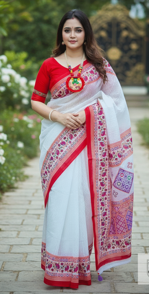 ✨ পহেলা বৈশাখের আকর্ষণীয় লাল পাড় সাদা শাড়ি