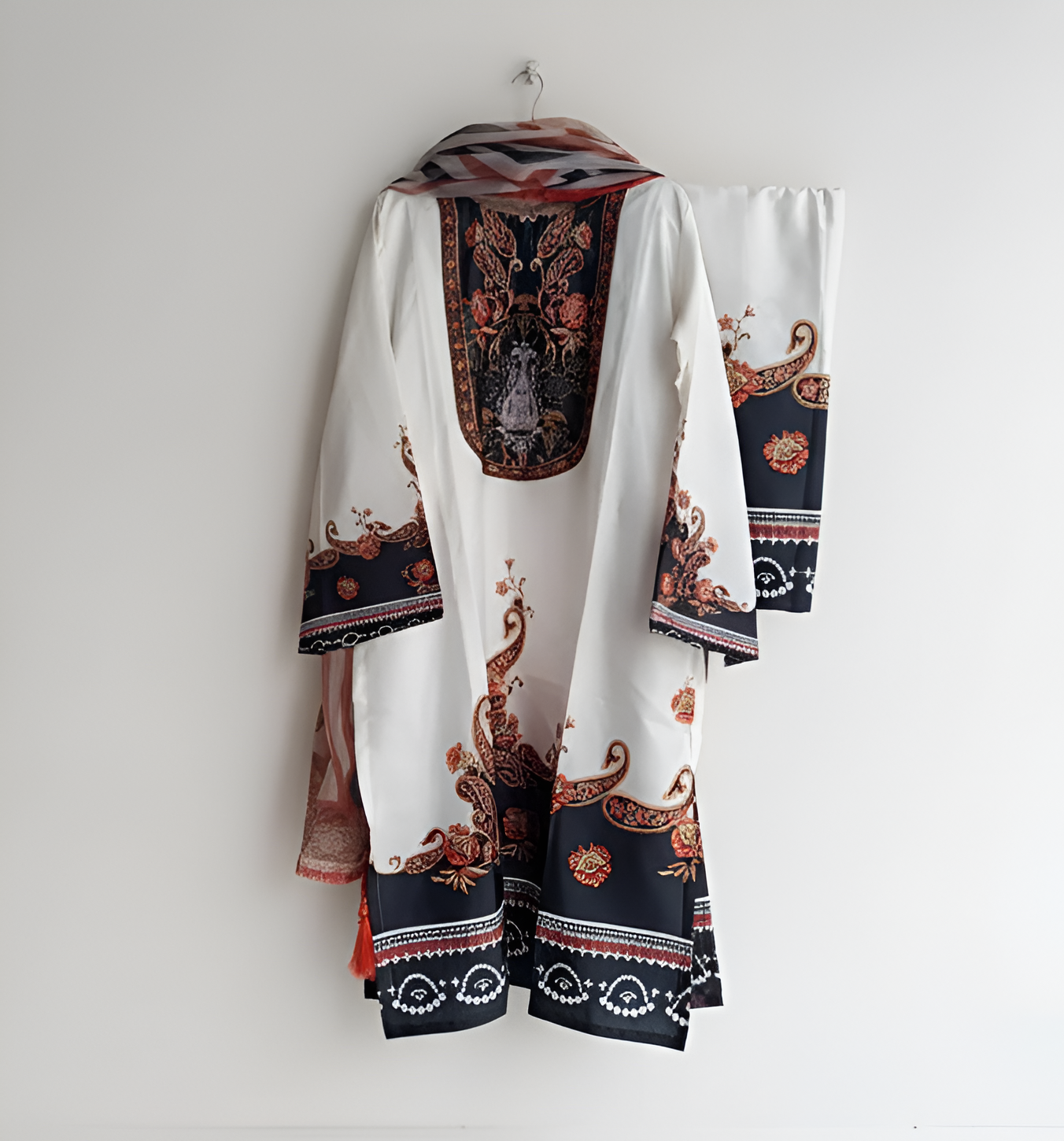 Ready Made Pure Three Piece একটি রেডি টু ওয়্যার থ্রি পিস সেট। পিওর কটন/লন কাপড়ে তৈরি হওয়ায় এটি আরামদায়ক ও হালকা। কামিজ, সালোয়ার/প্যান্ট ও ওড়না একসাথে ম্যাচিং সেট হিসেবে দেওয়া আছে। দৈনন্দিন ব্যবহার ও অফিসের জন্য উপযুক্ত।